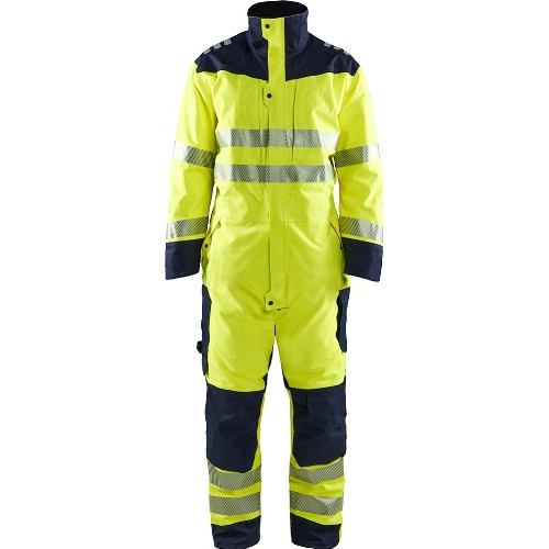 Inherent flamskyddad, varmfodrad svetsoverall för vinterbruk. Tillverkad i ett vind- och vattentätt material med andasfunktion och tejpade sömmar. Bröstfickor med blixtlås. Fleecefodrade framfickor med lock och tryckknapp. Innerficka med blixtlås. Benficka med bälg och lock med kardborreknäppning samt med en invändig telefonficka. Förstärkt tumstocksficka med knivhållare och pennficka. Avtagbar ID-kortsficka för flamskyddade plagg. D-ring. Hög krage med täckt blixtlås. Med knappar för fäste av luva (säljes separat). Frontstängning med dolt kraftigt tvåvägsblixtlås i plast och frontslå med tryckknappar. Stretchpanel i rygg. Justerbar med dragsko i midja. Förstärkt på knän och nedre delen av bakre byxben. Utvändig knäskyddsficka. Justerbart benavslut med öppningsbart snölås. Segmenterad flamskyddad transferreflex på bål, ärmar och ben. Reflexdetaljer på axel. Plasttryckknappar. Utvändiga certifieringsetiketter. Bra ytor för dekalning. Metallfri. Antistatisk kvalitet. Fri från PFAS. Vattenpelare 12000 mm, andasfunktion Ret 8,15. Tvätt 60°C.